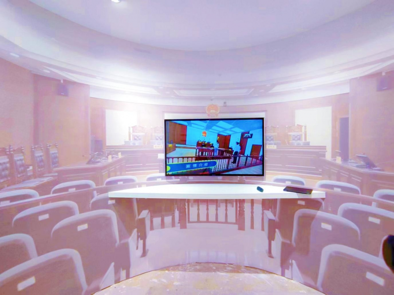 我们采用55寸防爆高清显示屏配合VR单人互动一体机(头盔+手柄),打造了一套完整的虚拟庭审体验系统。参与者戴上VR头盔后,通过手柄进行指令操控,即可“走进”法庭现场,扮演法官、检察官、辩护人等不同角色。通过投屏设备,VR头盔中的内容实时同步到55寸液晶电视,配合音频分离器将VR音频输出到吸顶音响,其他参观者可以同步观看,实现“一人体验、众人学习”的效果。
