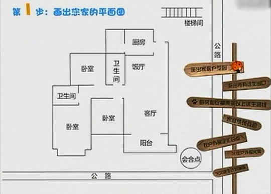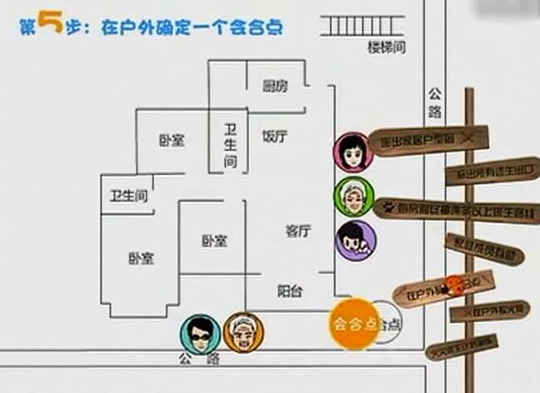 在你的住家外面确定一个家里人都知道的逃生会合点。若火灾发生,家庭成员直接到会合地点集合。