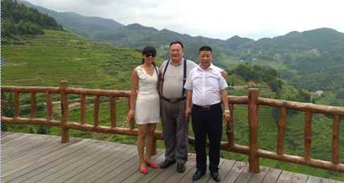 今年8月3日,新化紫鹊界梯田生态农业开发有限责任公司的两位老总,胡仲科先生和邹建波女士盛情邀请我们去紫鹊界看看,想着这是了却一个心愿的机会,于是高高兴兴成行,从长沙出发,在新化县城会合了胡总,驱车在弯弯曲曲的公路上奔忙了近2个小时,下午3点,来到第一站月牙山观景台。 到了观景台,邹女士已在哪里等我们了,握着她的手,却回头去望来时的路,这路哇,险是险,却铺了炒砂,修的很好。