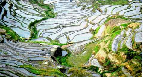那么,紫鹊界就一无是处了么?显然不是。她是首批世界灌溉工程遗产、国家自然文化双遗产、中国重要农业文化遗产、国家水利风景区,属雪峰山脉奉家山体系,最高处海拔1585米,总面积120平方公里。层层叠叠的梯田以紫鹊界为中心向四周绵延,在海拔500米至1200米之间,坡度30至50度之间,共500余级,面积达8万余亩。