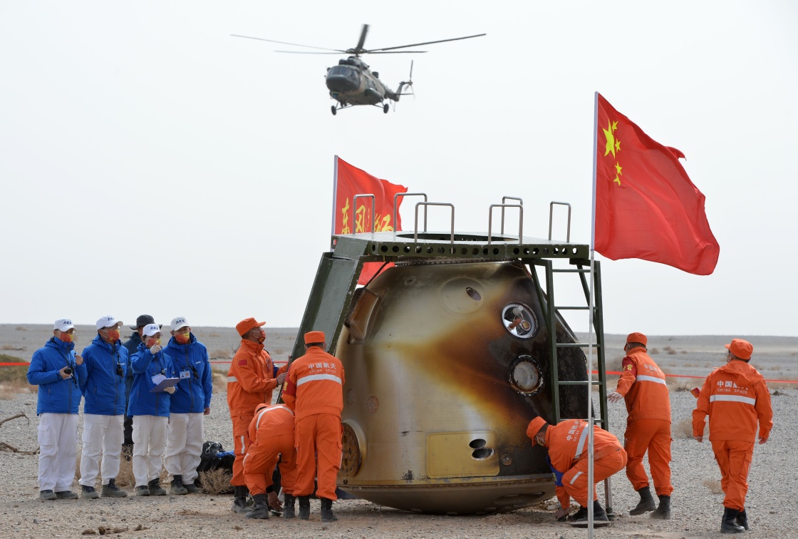 神舟胜利归,着陆欢歌唱,千秋伟业中华创。
