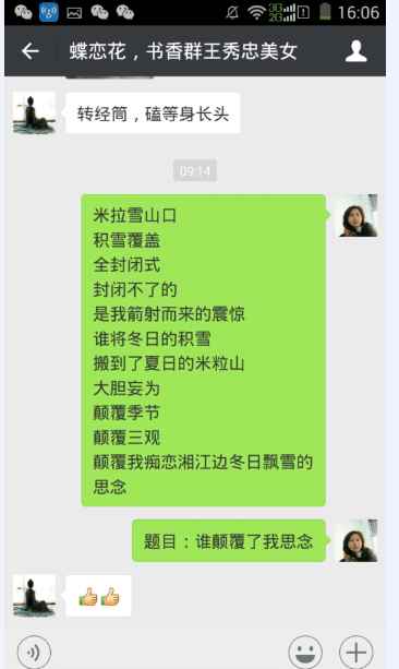 对方回道:“哈哈!你这妹子是哪的呀?看来还真读过几本书。说说看,你离我家有多远?我家是湖南省宁乡市唐市镇。”