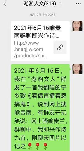 2021年6月19群聊喻贵南即兴作诗八首,其中三首为屏录群聊串诗