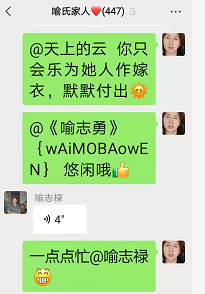 喻志勇家门说我一在线上的话,这群里都显得热闹些。