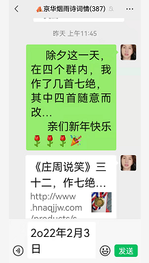022年2月3日,京华烟雨诗词情,我在此群发文《庄周说笑》