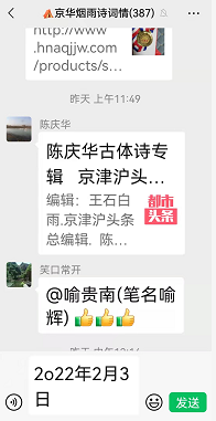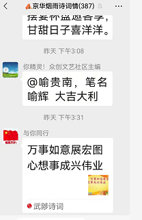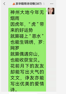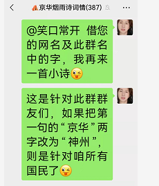 备注:如果把首句中的“京华”两字改为“神州”,此诗则非只针对群内而作,而成了针对所有国民而作了。