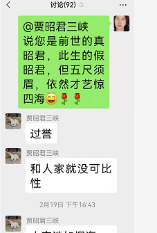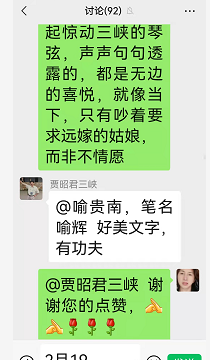 贾昭君三峡(网名)在群内谦虚道:人家浩如烟海,皓月之光,我就没光
