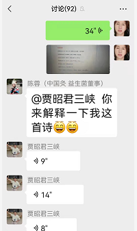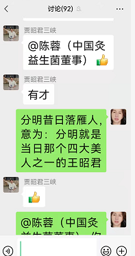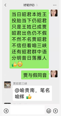 虽然同在一个群,但彼此在群内都没聊过,更甭说加微信好友,当下在群内通过打听,我才知贾昭君三峡是黑龙江人,在三峡上班。我说我没去过三峡,正聊着,另一位陌生的群员陈蓉(中国灸益生菌董事) 点赞并给我的诗配了一张美图,昭君出塞。正如她所言,美得不要不要的。