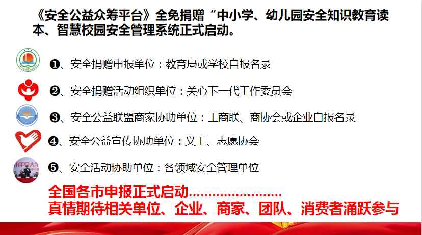因此,湖南安全教育网、湖南安全知识教育读本系列丛书编辑委员会、上海魅南智南科技有限公司(爱心提供安全知识教育系列丛书、智慧校园安全管理系统)并搭建安全公益众筹平台。