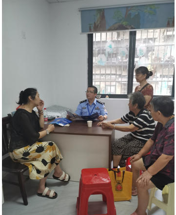 周警官向老人们宣传一些老人被骗的事情,要他们提高警惕,老人们都很认真的听,并且还说要帮忙在小区内进行反诈宣传。