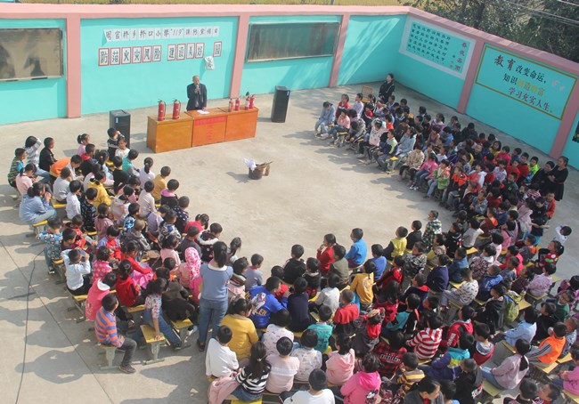 防范火灾风险,最主要的是在于“防”,桥口小学领导班子和全体教师达成了一个共识,意欲借助“119消防宣传日”这一契机,在全校师生中开展体系完整的消防宣传教育活动。于是,学校出台了《“119”消防宣传日活动实施方案》,确定了活动日要让学生完成“听、说、看和练”等四个动作,经历“消防知识宣讲、你说我说、实练灭火和火场应急疏散”等四个环节。在听取老师对火灾及预防火灾的知识讲座后,就让学生讲一讲发生在自己身上或周围那惊心动魄的火灾,因此巧妙地设置了“你说我说”环节,哪想竟激发了同学们的兴趣,纷纷举手,争先恐后上台讲出自己与火“偶遇”的一个个场景:有的在烧饭时不慎把火房的柴堆点燃了;有的冬天在放学回家路上用山边的枯叶烧火取暖时被一阵突然而至的风吹得四处飞扬,差点引发森林大火;有的因为调皮去焚烧垃圾而导致消防车来灭火等等,同学们一个比一个讲得离奇,唏嘘声却一声比一声叹得沉重:“水火无情”、“火灾猛如虎呀”、“千万不要玩火,一失足成千古恨”……