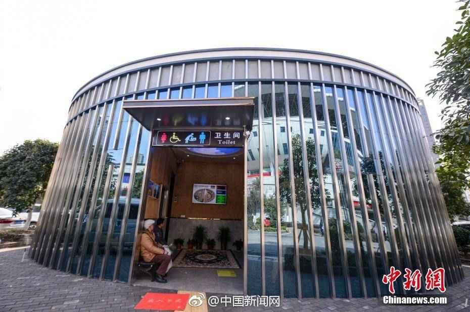11日,湖南长沙街头的首座智能公共厕所亮相。人脸识别厕纸机、WIFI等设备让厕所内充满了科技感。