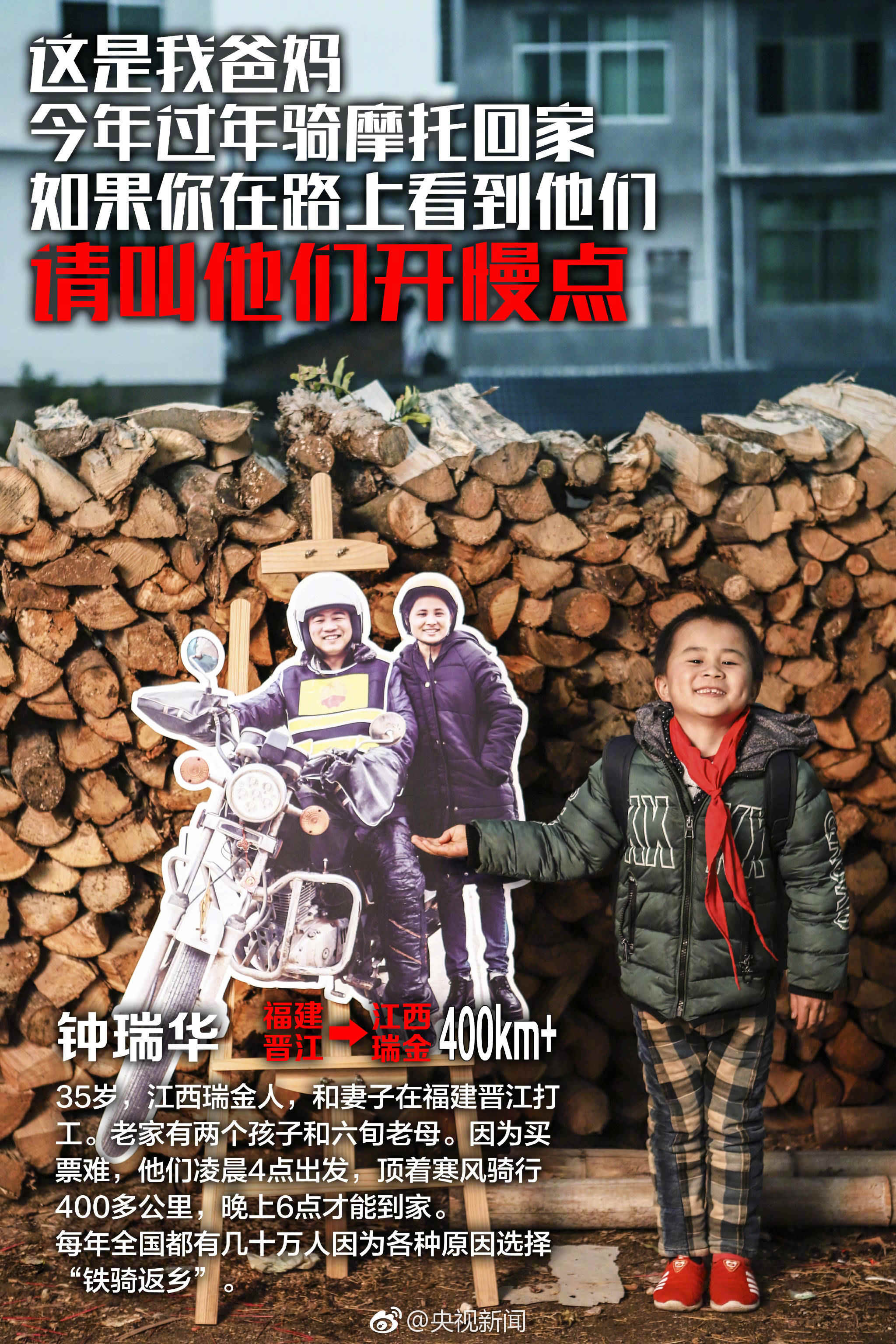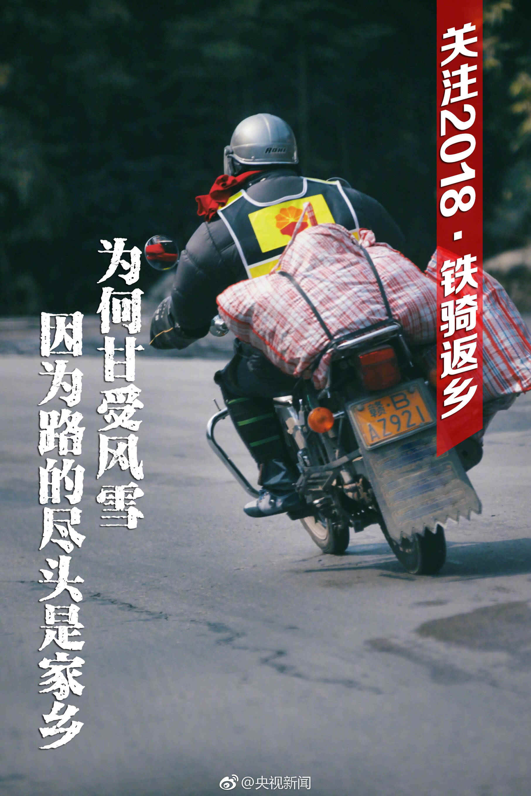 春运2018第一天,央视新闻推出央视新闻伴你回家公益活动,央视记者陪伴铁骑大军返乡。数十万“铁骑大军”每年就是这样往返几百甚至上千公里返乡,离家越近,归家之心越切。提醒回家路注意骑行安全,回家,才是更好的礼物。