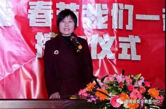 湖南省福熠文安全教育服务有限公司总经理左文方女士在接车仪式上致辞