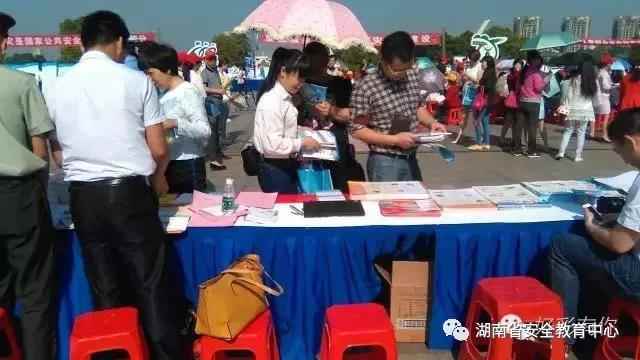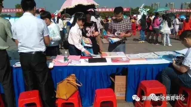 与会群众在政府展台前踊跃抢领《安全知识教育读本》和其幼儿版,小学版,初中版,高中版。