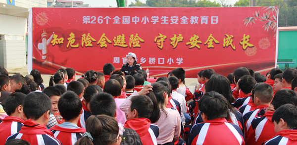 这天是第26个全国中小学生安全教育日,今年的主题是知危险会避险,守护安全成长。市交通警察大队主动担当行业责任,充分利用这一有利契机走进学校对学生进行交通安全的知识宣讲,在帮助学生,尤其是小学生提高交通安全常识的前提下,确保学生安全幸福成长。因此,姜警官在讲座开始前就现场对同学们开展调查,企图弄清楚同学们当前处于的交通状况,于是询问同学们每天上学是走路还是乘车这样一种提问的方式开启了当天的讲座。当有的同学说每天坐摩托、有的说乘电动车,还有的说是坐三轮车或拖拉机时,姜警官瞬时露出焦虑的神情,她感觉农村孩子的交通存在较为严重的安全隐患,对学生进行交通安全的教育力度要更大。于是,她从学生最现实的上学方式入手,教育学生不要乘坐那些没有安全保障的非法营运车辆,对于爸爸用摩托车接送,同时也不能掉以轻心,保护措施一定要完备,比如佩戴头盔就是最重要,从而,一步步地将学生引向如何去乘车、乘车会遇到哪些问题,以及遇到问题后如何来保护自己等深层次的问题,她采用抽丝剥茧的方式,用大量的事例帮助学生理解为什么要遵守交通法规,进而告诉学生如何来遵守交通法规。她在举例的同时,往往会让同学们自己先来说说“我会怎么做”,从中窥见同学们的安全意识、应对措施和随机应变的能力,针对发现的问题再进行重点突破。