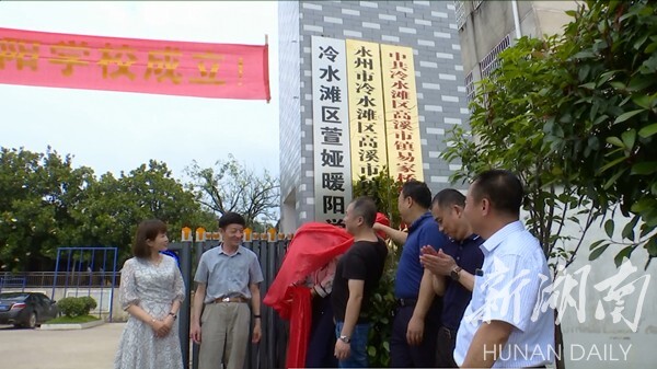 湖南日报·新湖南客户端6月12日讯(通讯员 王操 通讯员 欧阳骥)6月11日下午,冷水滩区萱娅暖阳学校揭牌仪式在冷水滩区易家桥小学举行,永州市慈善总会会长、原永州市人大常委会副主任杨海河,深圳点亮梦想捐书助学慈善促进会理事长、米仓集团董事长任学正,副区长吴春华等出席并共同揭牌。