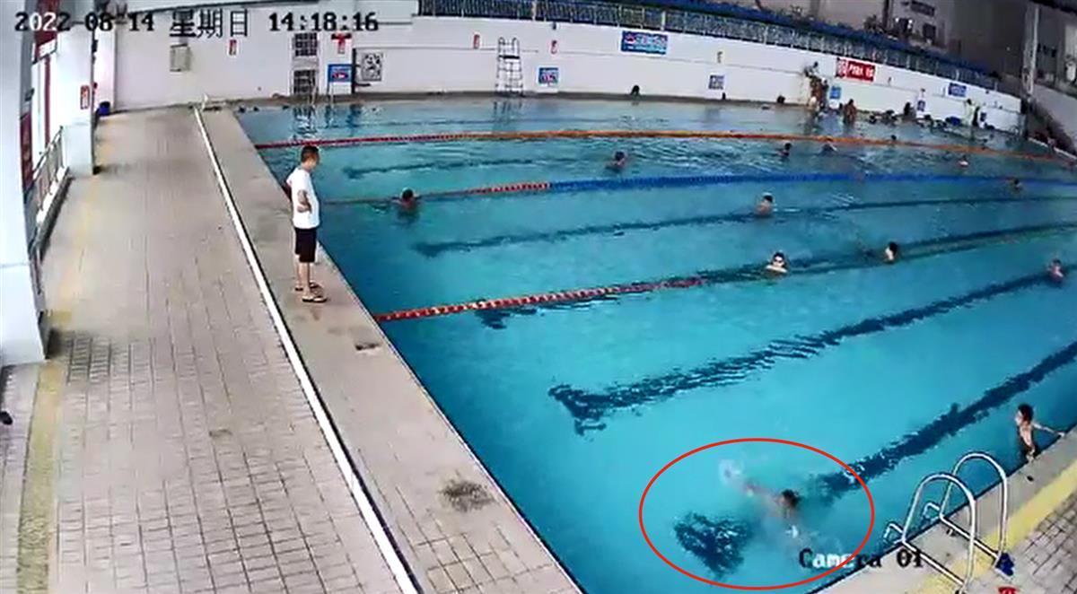 游泳馆视频显示,监控时间8月14日下午2时18分许,一名身着泳裤的男孩跳入泳池,之后孩子一直在水中不停挣扎,1分钟后沉入水底,许久没有动静。下午2时20分时,一男子发现溺水男孩,大喊救人。随后,馆内两名男子先后跳入水中,对溺水男孩进行救援。15日,极目新闻记者核实了解到,视频中的男孩已不幸溺亡。