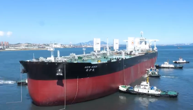 10月21日,大连船舶重工集团公布超大型原油轮“新伊敦”航行视频。“新伊敦”轮总长333米、型宽60米、型深30米、设计吃水20.5米。该船满足最新的氮氧、硫氧化物排放标准以及欧盟拆船公约有害物质清单等要求。综合性能指标世界一流,是新一代节能降耗船型的典范。(我们视频)