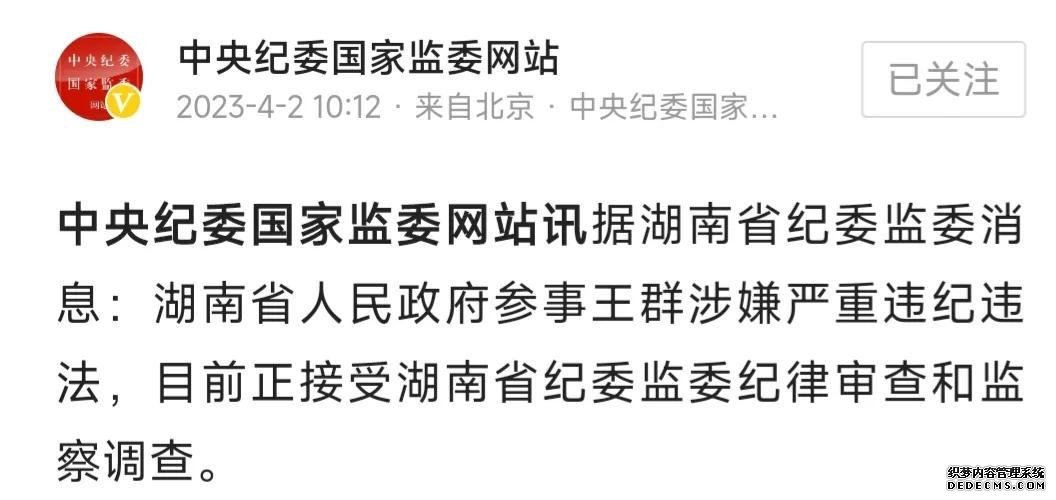 4月2日,湖南省又一高官涉嫌严重违法违纪,接受审查调查!