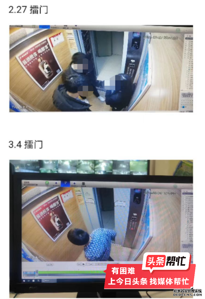 胡女士提供的照片显示,2023年3月起,在她的新房门上,先后被贴过多张印有“还我中介费”“还我血汗钱”“胡某某还钱”等纸张。胡女士通过摄像头清晰地拍下了贴纸的一男一女的样貌。监控录像显示,3月14日晚8时许,一名长发女子掀开被纸张挡住的摄像头对胡女士说:“你要是能看到监控,你最好悠着点,这个东西迟早要解决的。”