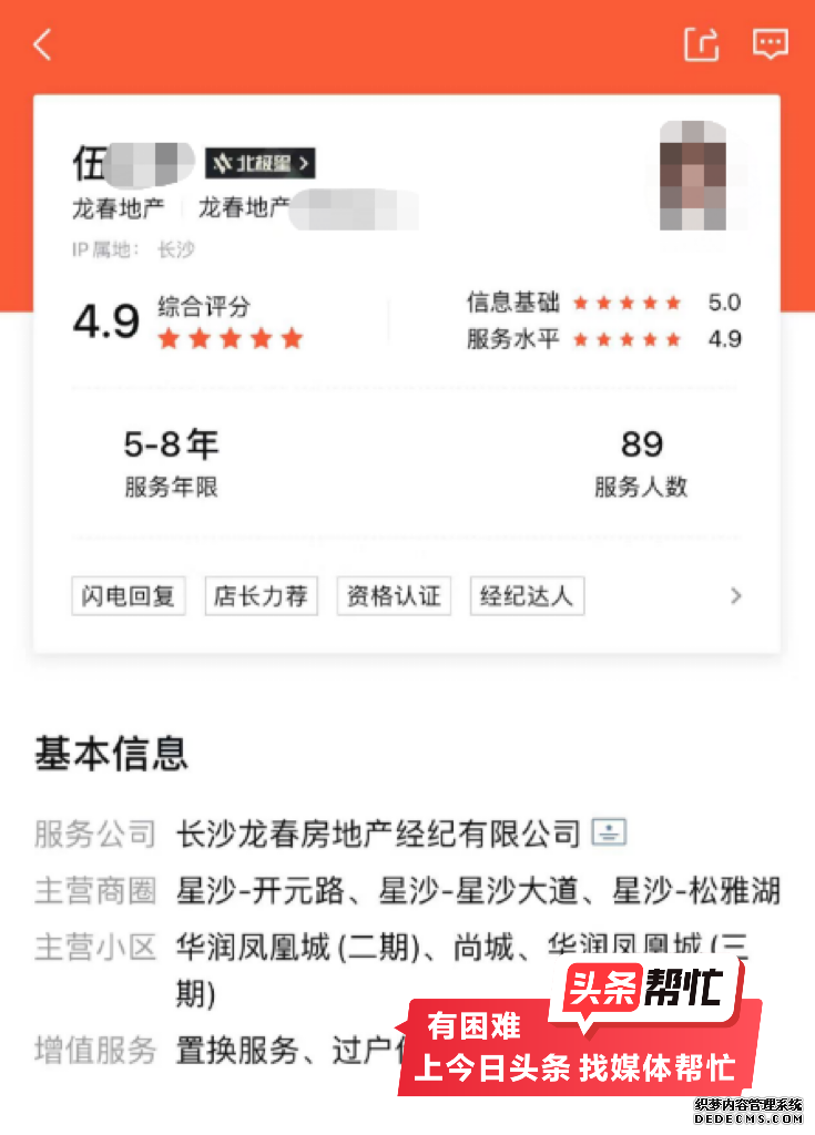 网络平台显示,该房地产中介伍某某登记的公司为长沙龙春房地产经纪有限公司。4月2日下午,晨意帮忙记者致电龙春地产,该公司法定代表人安某证实,与胡女士联系的中介伍某某并非该公司员工,该公司也从未做过二手房交易。安某猜测,可能是此前有员工使用公司的营业执照在58同城、安居客等网络平台开设了端口,离职后又将账号信息出售以发布房源,才导致了此类事件发生,这种情况建议客户直接报警处理。