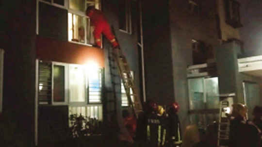 女童被锁二楼 消防架梯救人