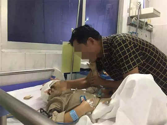 26日下午,记者在医院看到,小莫头部包着厚厚的纱布,其额头、耳朵和眉角处依然有伤疤和血渍。