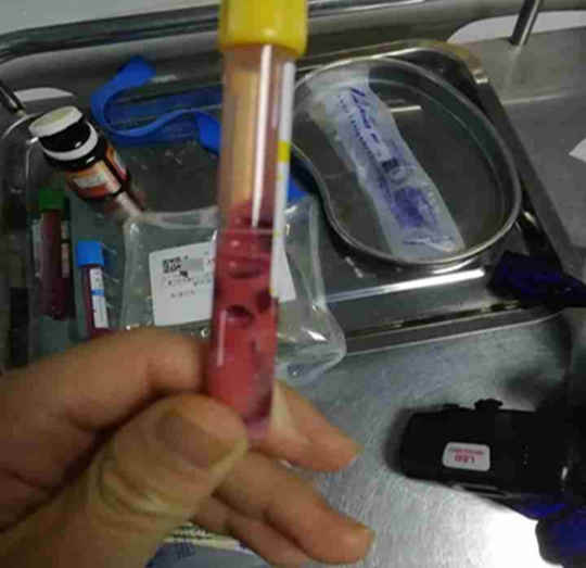 “反复抽血检查,指导治疗。”隗世波说,但当血液从小钱手臂血管里抽出时,在场医护人员惊呆了:血液竟然是罕见的粉红色。再抽一次,一样还是粉红色,如同混了大量油脂,非常浓稠,并在瞬间凝固,检验仪器无法识别。