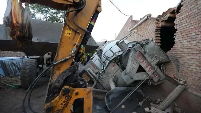 5月24日19时33分,黄南消防救援支队指挥中心接到群众报警称,在黄南州同仁市隆务镇吾屯上庄村处发生一起混凝土搅拌车侧翻事故,有1人被困于墙体与车辆中间,请救援人员赶紧出警进行救援,指挥中心随后立即调派德合隆南路特勤消防站出动两辆消防车、共计12人前往处置。到达现场后,消防救援人员发现,现场十分混乱,侧翻的混凝土搅拌车压倒了一民房外的围墙,一男子被困于倒塌的墙体与侧翻车辆之间,周围还有挖掘机等,围墙倒塌之后,救援人员的可操作面极为有限,增加了救援难度。