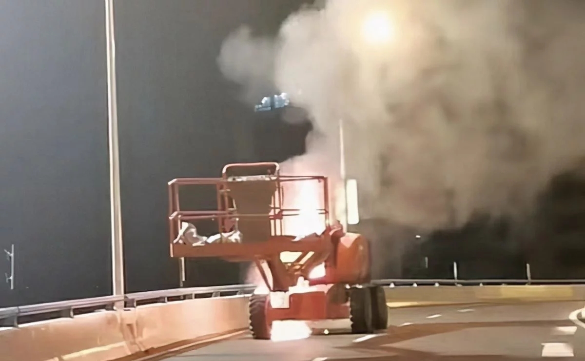 据了解,当时一辆登高作业车行至该匝道的一处弯道时,发动机盖内突感开始冒烟,随后车辆开始起火燃烧,现场一度有明火及烟雾。养护人员发现情况后,立即远离该车辆并拨打报警电话。