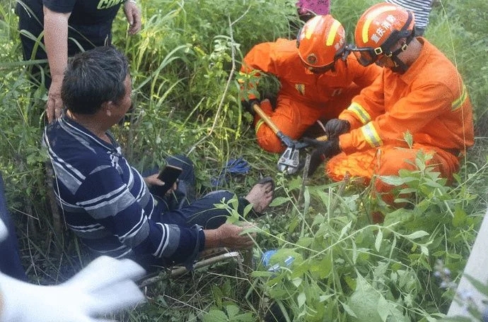7月12日,忠县一男子在野外玩耍时,因为没注意到地面上废弃水泥电线杆漏出的钢筋,导致右脚趾被钢筋刺穿。消防救援人员抵达现场后发现,刺穿男子脚趾的钢筋直径约1厘米,男子疼痛难忍,无法动弹。