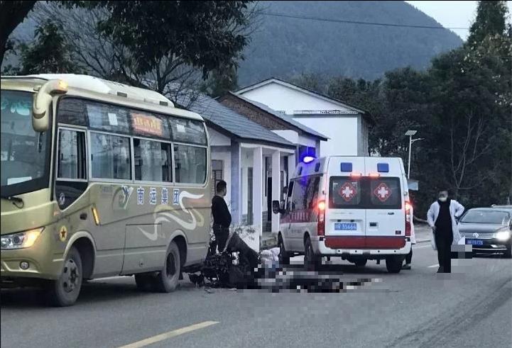 事发后客车驾驶员急速报警,120及交警及时赶往现场,摩托车后排女士当场宣布死亡,驾驶员急速送往县医院抢救,具体事故原因,请以相关部门调查为准。