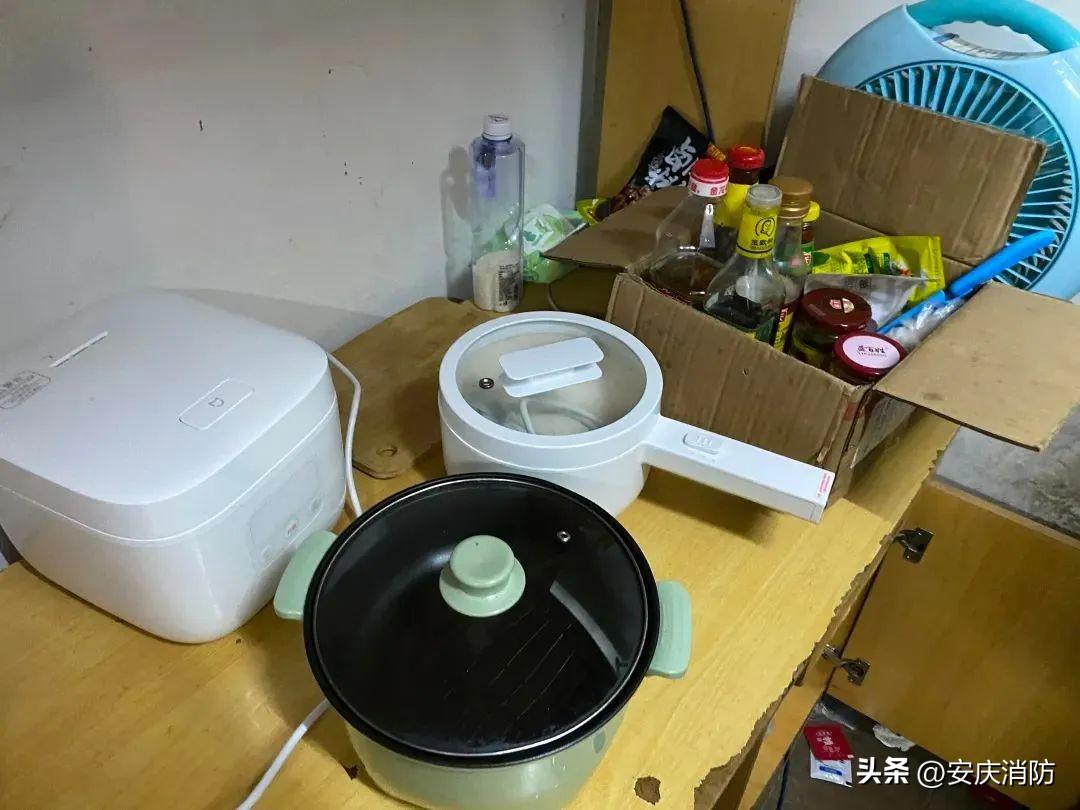 2021年,广西南宁一大学生把宿舍改装成茶室,消防员在现场发现违规大功率电器和易燃物品,并对同学进行了口头教育。