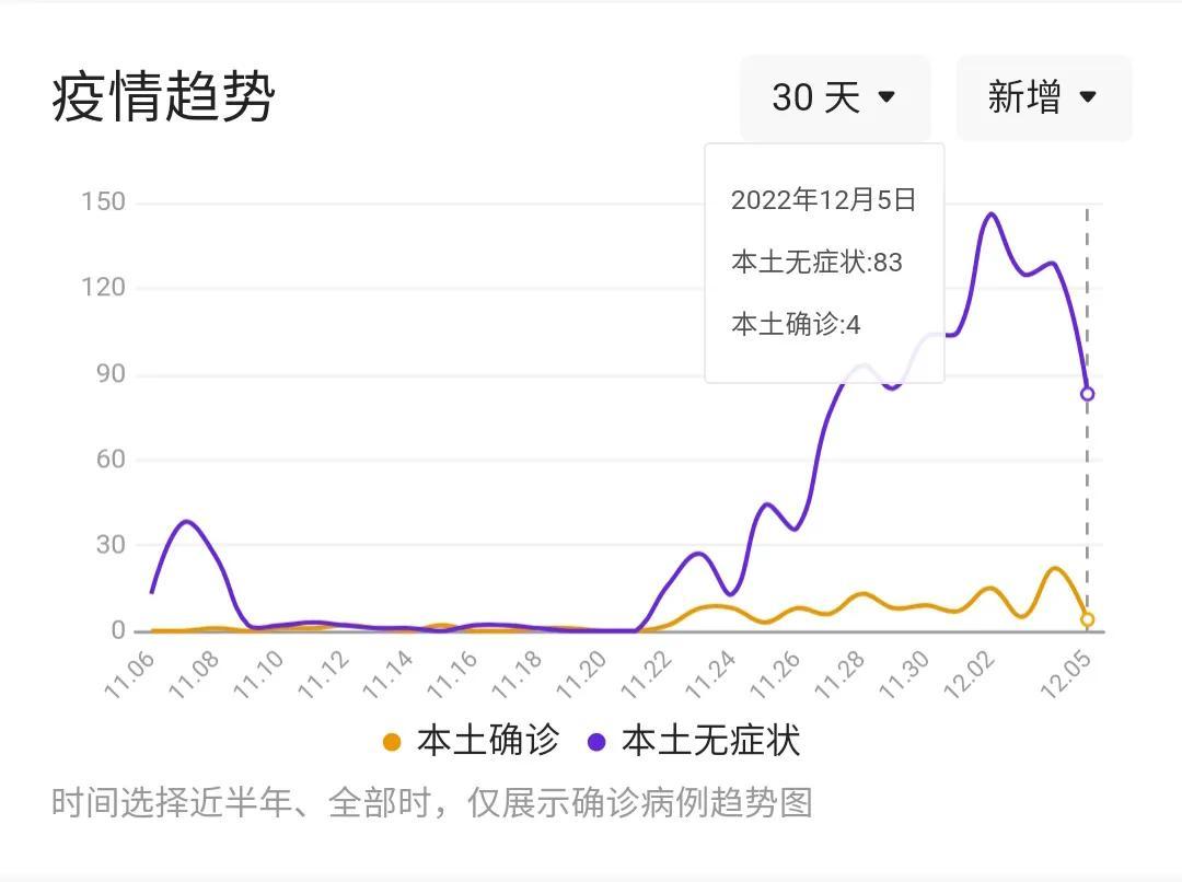 但是到了2022年的最后一个月,长沙的疫情显得不那么淡定,还是小有抬头,并且呈上升的趋势,刚刚12月1日,长沙的新增病例就突发,相比于一个月前的11月初直接翻了上百倍,单单一日新增了161例,昨日新增终于有了大幅度的下降,总新增87例,比着前几日几乎少了一半,值得继续保持。
