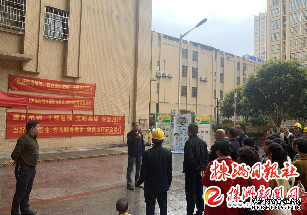 株洲分院高级工程师罗亮为物业公司、小区居民进行电梯安全知识普及宣传。