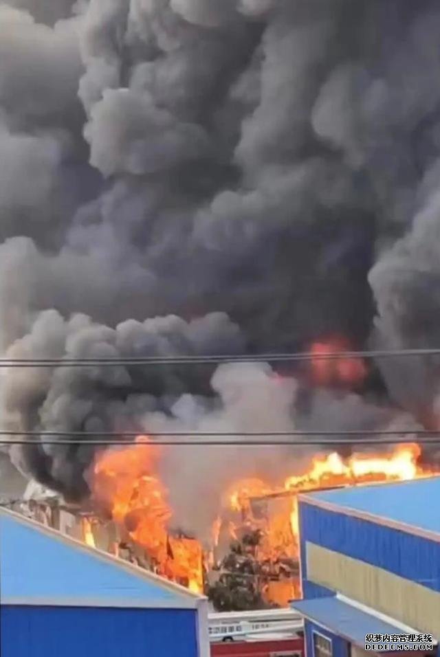 3月15日下午,洞口县二桥工业园一工厂发生大火,现场浓烟滚滚,火光冲天。