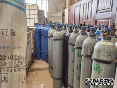 执法人员在现场发现氧气气瓶45个、二氧化碳气瓶31个、氩气气瓶44个、氮气气瓶13个、乙炔气瓶38个,共计171个。