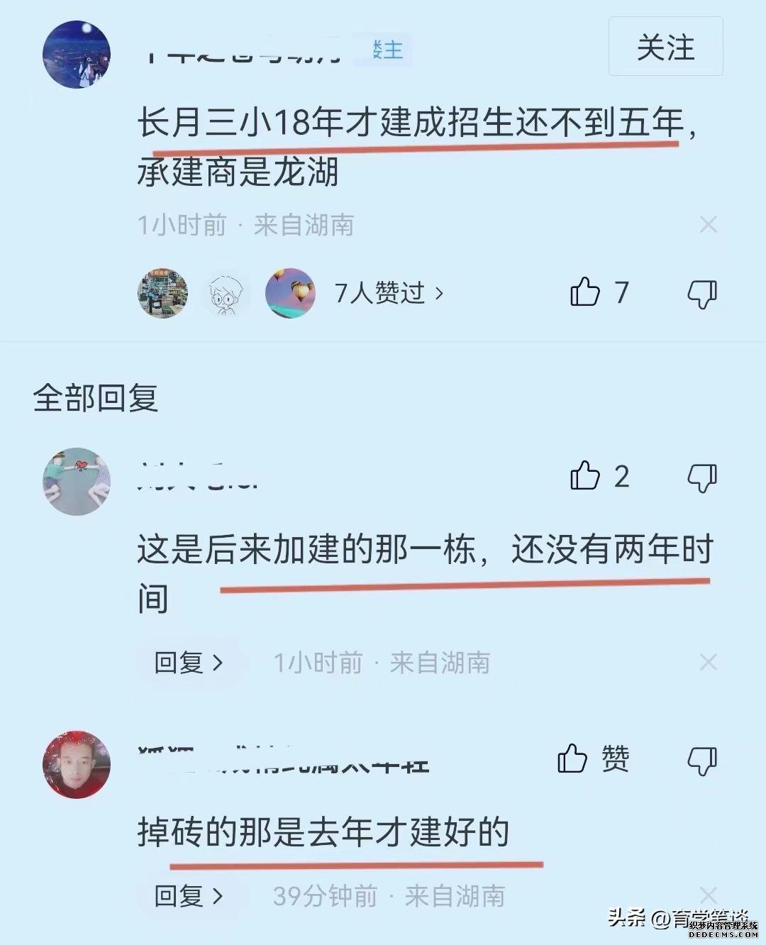 对此,有湖南本地网友指出,该小学建成于2018年,招生至今不到5年,墙皮被吹落的建筑投入使用不到两年,2022年才建好。