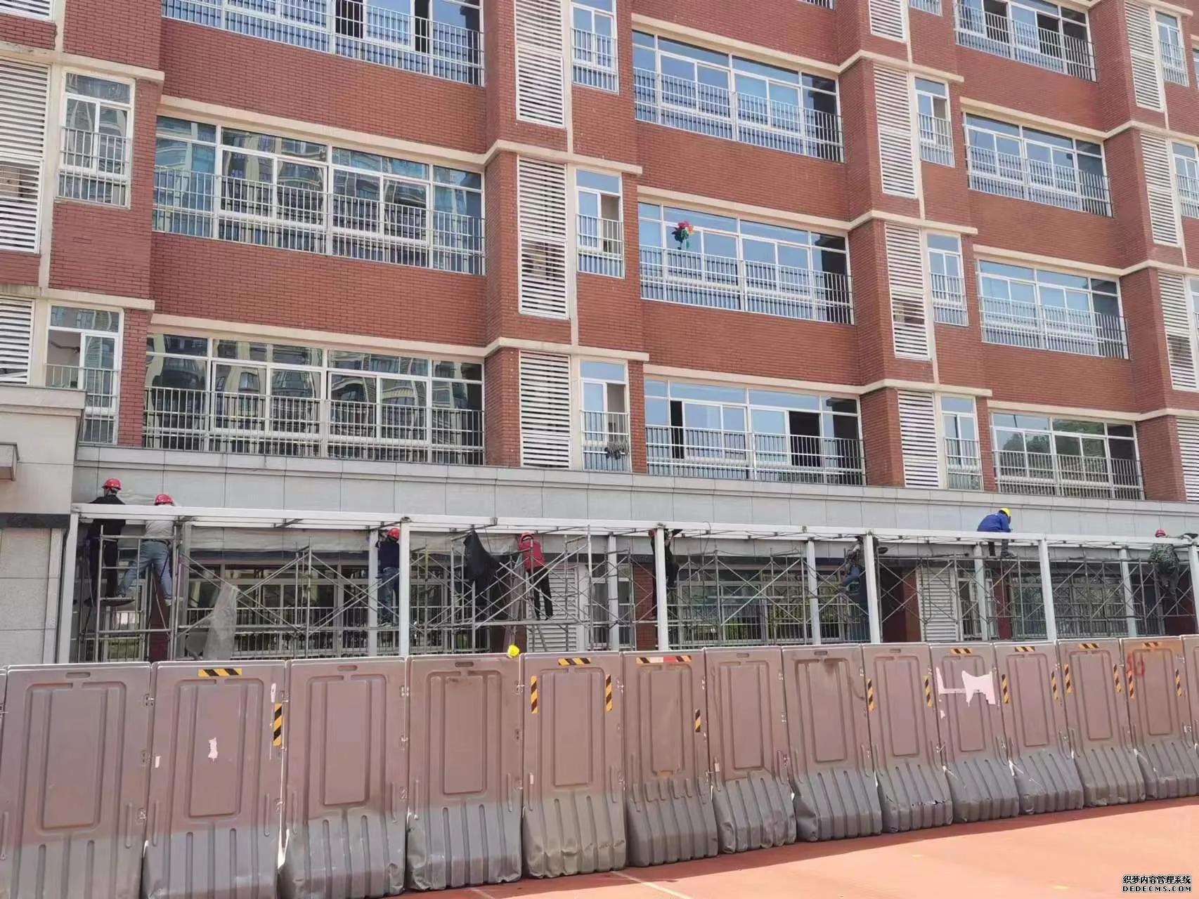 临时围挡已经撤除,仍设有铁栅栏围挡,教学楼出入口已经解除封闭。