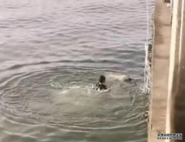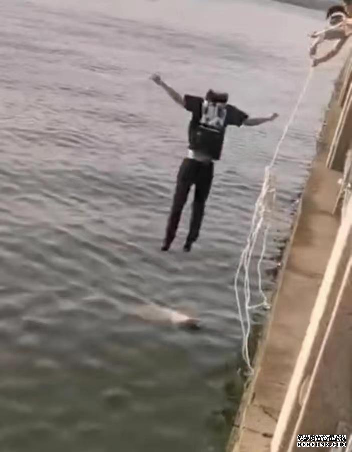 贺益翻越护栏纵身一跃,跳水救人。