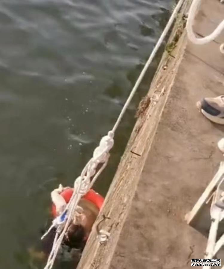 岸上游客放下绳索及救生圈相助。