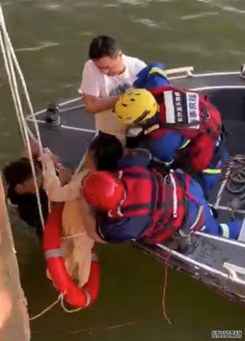 此时,长沙市公安局治安支队水警大队已接到110派发过来的警情,民警曹元煜和蓝天救援队队员立即驾驶快艇,从湘江东岸赶往事发水域。5分钟左右,快艇便到达贺益及女子身边,他们将这两人拉上快艇。
