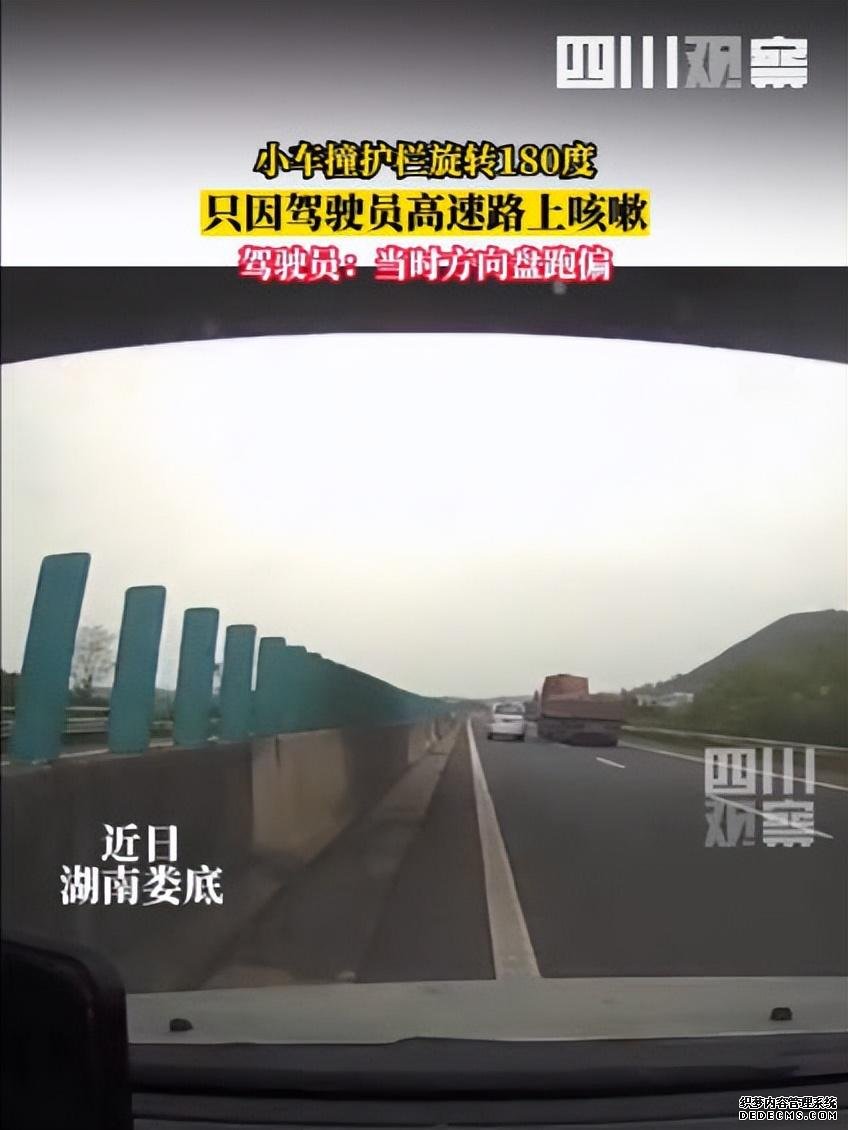 近日,湖南娄底。小车撞护栏旋转180度,只因驾驶员高速路上咳嗽。驾驶员表示:咳嗽分神了,方向盘跑偏。最终民警认定彭某因驾驶时有其他妨碍安全驾驶的行为,负此次事故全责,并对其处罚50元,驾驶证记3分。