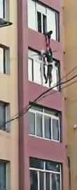 据了解,温先生在附近开大排档,他路过事发地点时,女子已悬空数分钟。他用手机记录下了整个经过:当时大约是晚7点钟,女子悬挂在墙上,几名男子冲上楼试图打开门帮忙把女子拉上去,无奈屋门锁闭,他们进不去,只好下楼另想办法。同时,楼下有4人拉起了苫布,打算接住随时可能坠落的女子,可女子落地时偏了一些,苫布未能起到作用,女子摔在了地面方砖上。