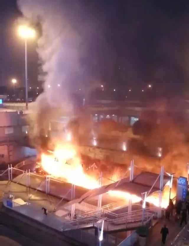 昨夜,长沙南站的士等候区广告牌起火!