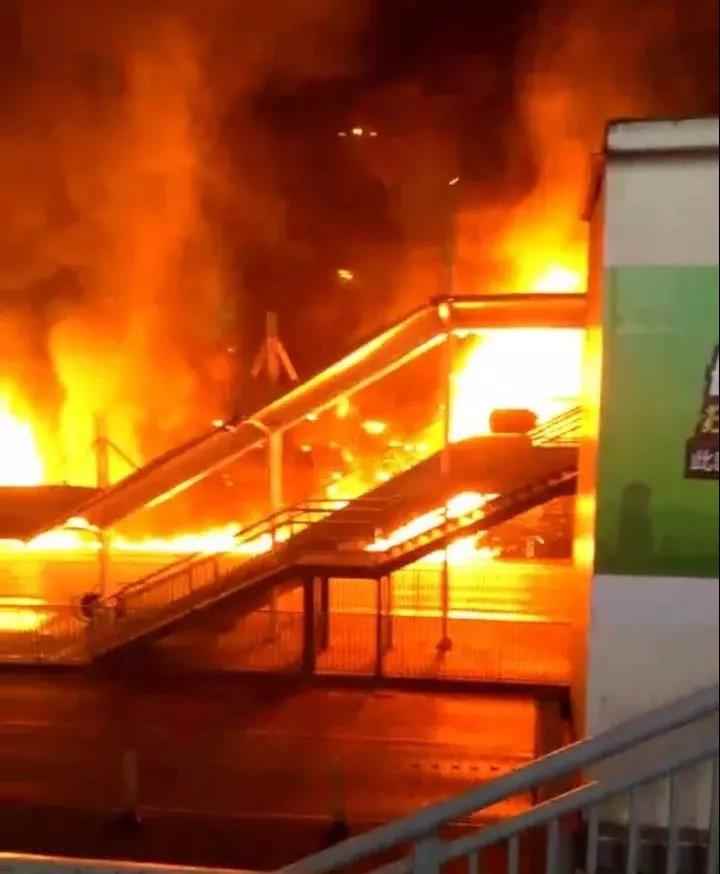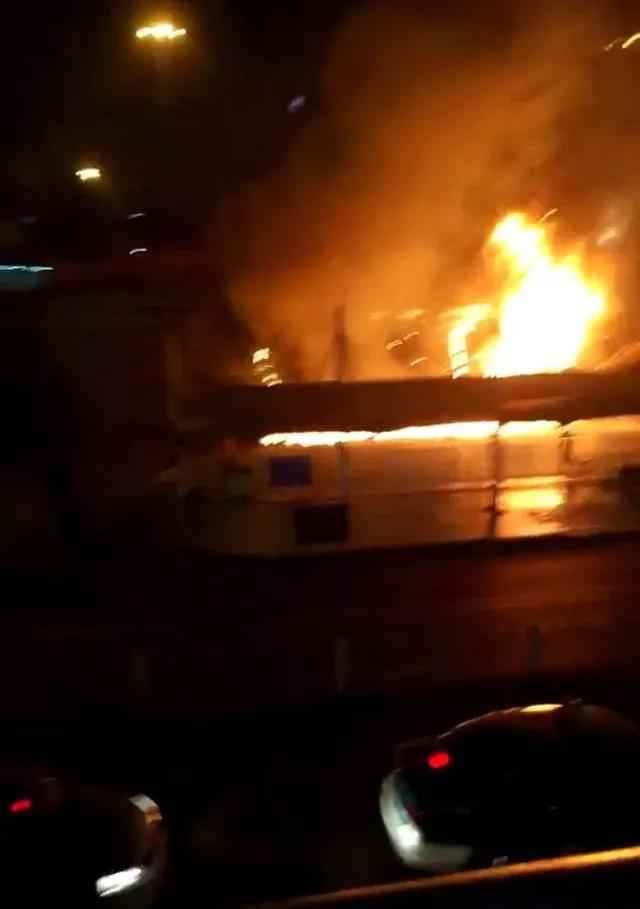从听众拍摄的爆料图片上来看,整个长沙南站的前广场都被火光给照亮了。并且伴随着非常大的黑烟。