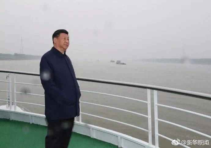 25日上午,习近平总书记驱车一个半小时,从宜昌前往荆州。在荆州港码头登上轮船,顺江而下,察看长江沿岸生态环境和发展建设情况,听取长江航运和航道治理、河势控制和护岸工程、非法码头整治等情况汇报。
