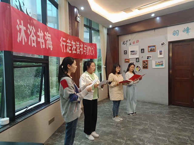 接着,该集团副校长谭永红布置“青衿”书社系列读书活动下阶段工作;教导主任周可为“沐浴书海,行走在读书与教育之间”12位青年教师赛课颁奖。随后,每位老师分享了读书活动月的读书经历,各抒己见,整个交流活动精彩不断,不时爆发出热烈的掌声。