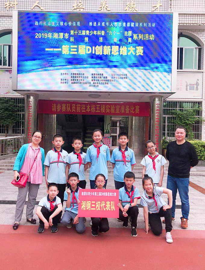5月22日,在湘潭市第三届DI创新思维大赛中,湘钢三校首次组队,在四十一支中小学队伍中脱颖而出,成绩斐然:夏竹、周润兰老师指导的晨曦小队荣获特等奖,邓志勇、吴莹老师指导的六月西湖小队荣获一等奖。